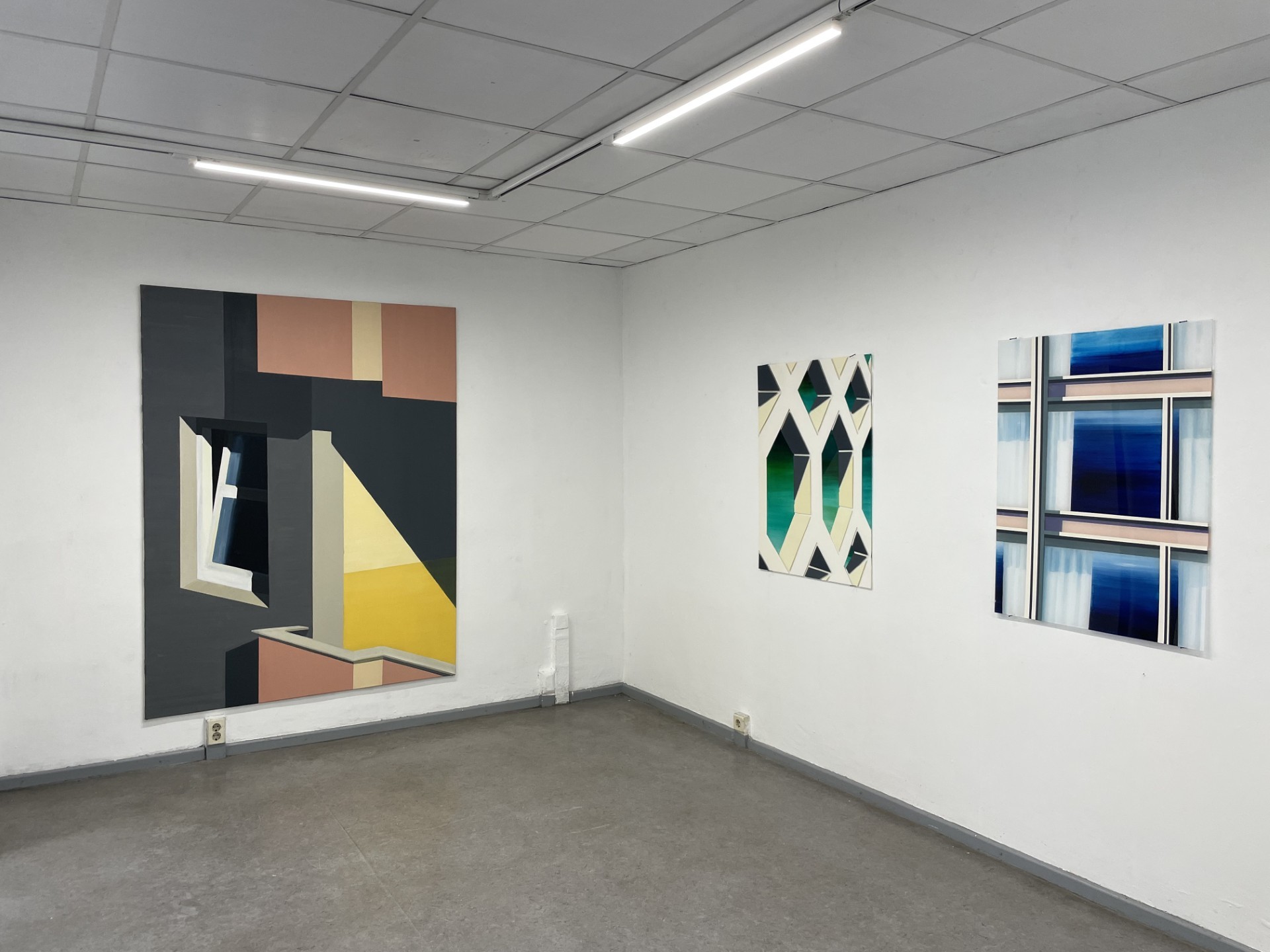 C'est surtout dans l'espace urbain que Tim Trantenroth découvre les motifs de ses travaux de peinture et d'installation. Ce sont toujours des extraits d'architectures, des situations urbaines, les structures claires des façades avec leurs ouvertures de fenêtres, mais aussi les barrières et les appareils techniques de surveillance si typiques et omniprésents de notre époque. Trantenroth traduit de tels témoignages de la formation et de l'aménagement de l'espace urbain - historique et contemporain - dans un langage pictural qui marque la frontière entre le figuratif et le non-figuratif.